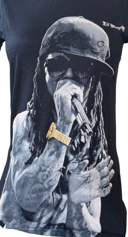 Tultex Women's Lil Wayne Graphic Black Short Sleeve Shirt Size Small