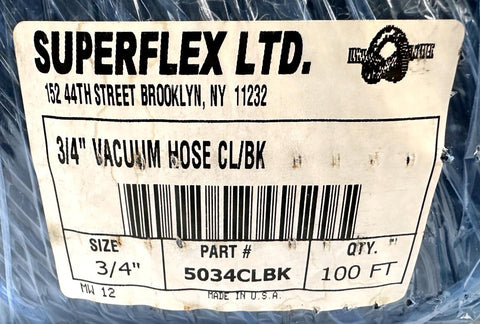 Superflex 3/4" x 100' Suction Vacuum Hose Clear Black 5034CLBK