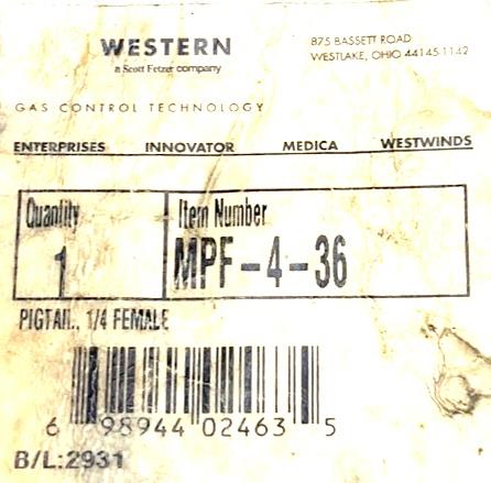 Western MPF-4-36 Teflon Hose Pigtail Assembly 1/4" Female Braided