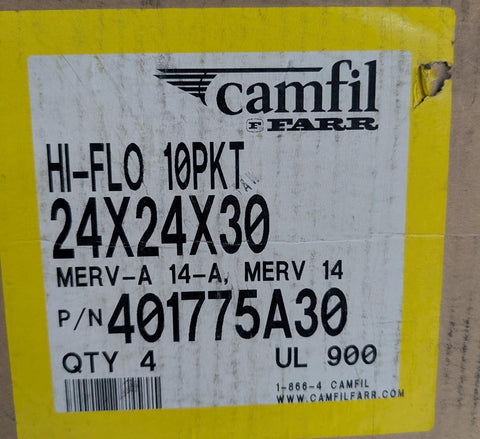 Lot of (4) Camfil 401775A30 HI-FLO MERV-A 14-A 10 Pocket Air Filter 24"x 24"x15"