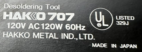 Hakko 707-2 Desoldering Tool 707 120VAC 120W 60Hz 329J W/ 707-1 Soldering Gun