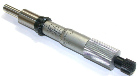 This is Starrett Reverse reading Ratchet Stop, Micrometer Head with Lock Nut, Cat. # RV263. Range -- 0 to 1 Inch The No. 263 's reading surfaces are satin-finished stainless steel for easy readability. These heads have features listed below: No-glare, satin chrome finish Ring-type knurled lock nut for quick and sure locking Furnished with 1/2" (12.7 mm) diameter clamping surface Anvil and spindle hardened and precision ground - with micro-lap finish on end Resolution -- .001" Starrett, a leader who has set the standard for fine precision tools in industry for over 122 years, has rightfully earned the title, "World's Greatest Toolmakers". I will fully guarantee this very precision micrometer head.
