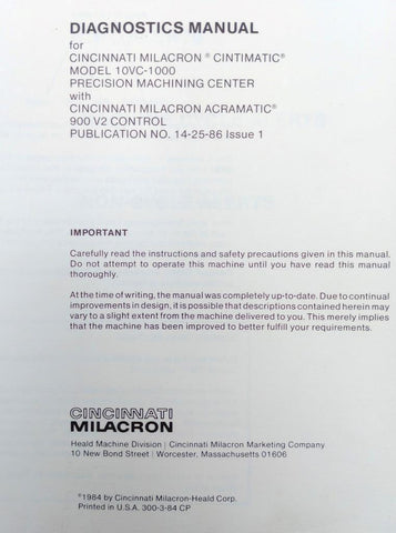 Cincinatti Milacron 10VC-1000 Precision Machining Center Diagnostics Manual