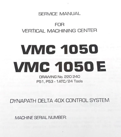 ZPS VMC 1050 & 1050E Vertical Machining Center Service Manual