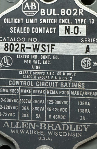 This listing is for an Allen-Bradley Oiltight Limit Switch