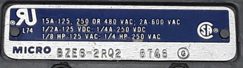 Honewell Micro BZE6-2RQ2 Enclosed Limit Switch 125/250/480VAC 15A 600VAC 2A Snap