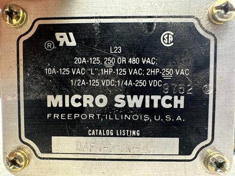 Micro Switch BAF1-2RN-LH Snaplimit Switch 20A 125/250/480VAC