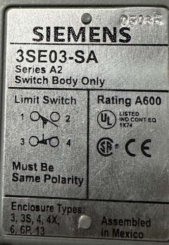 Siemens 3SE03-SA Limit Switch w/ 3SE03-DR1 Rotary Head & 3SE03-RA Receptacle