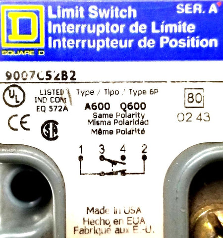Square D 9007C52B2 Limit Switch Ser A Type B Class 9007 Pretravel 10°