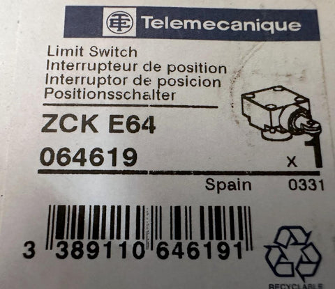 Telemecanique ZCK-E64 Limit Switch 064619 Plunger Head