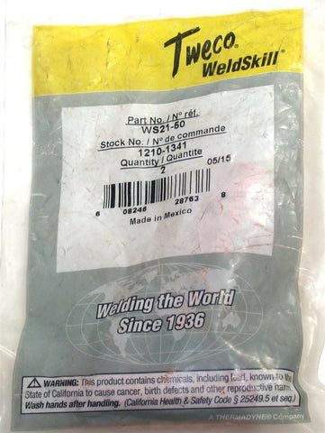 You are bidding on a New Lot of 2 New Tweco 1/2" Thread-On Weldskill MIG Welding Gas Nozzles (1210-1341), No. WS21-50.