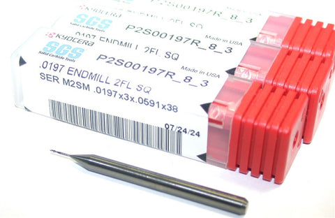 Lot of 3 Kyocera SGS P2S001975_8_3 .0197" Diameter 2 Flute Carbide End Mill