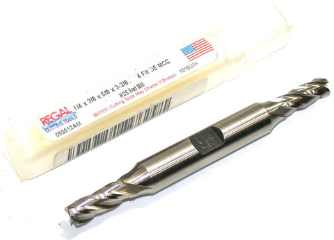 You are bidding on a New Regal 1/4" 4 Flute Double End HSS End Mill, No. 050012AM. Each Bid is for ONE End Mill. 3/8" Shank