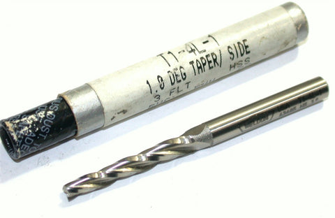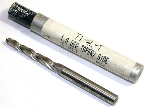 You are bidding on a New Weldon 1/8" diameter 1 Degree Taper/side 3/16" Shank 3 Flute HSS End Mill, No. T1-4L-1.