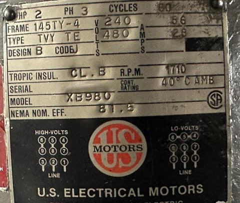 Electric: 240/480V, 60 Hz, 3 Phase