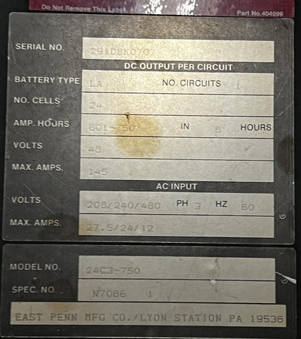 Deka 24C3-750 48V Forklift Battery Charger 601-750AH 145A 208/240/480V 3 Phase