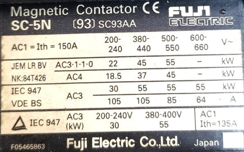 Fuji SC-5N Magnetic Contactor 200-250V 50-60Hz 200-220VDC SC93AA