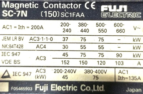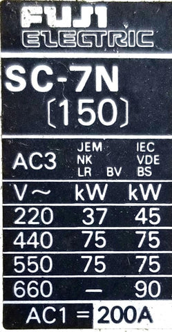 Fuji SC-7N Magnetic Contactor 100-127V 50-60Hz 100-110VDC SC1FAA