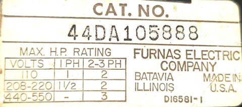 Furnas 44DA105888 Reversing Magnetic Contactor D16581-1 110-550V 1-3PH