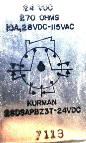Kurman 26DSAPBZ3T-24VDC Electromagnetic Relay 24VDC 270OHMS IOA (Lot of 2)