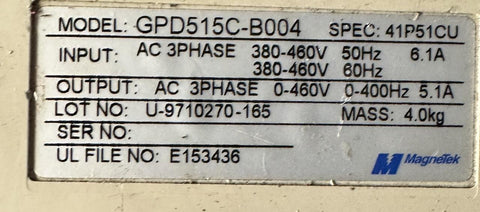Magnetek GPD515C-B004 AC Drive 3 HP 380-460 VAC 3‑Phase 50/60 Hz