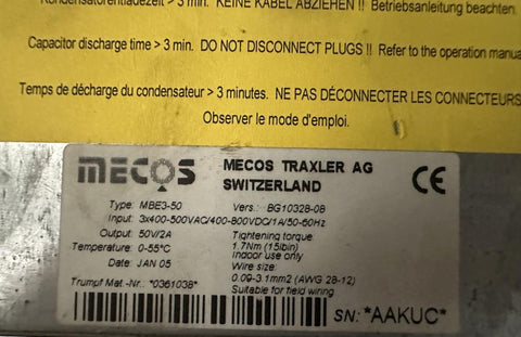 Mecos MBE3-50 Frequency Inverter Drive Magnetic Bearing Controller 3 PH 400-500V