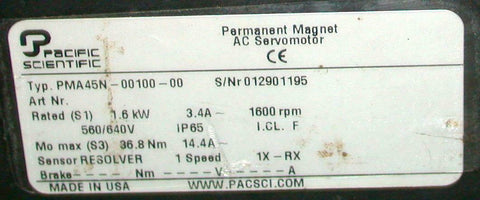 Pacific Scientific PMA45N-00100-00 Permanent Magnet AC Servomotor