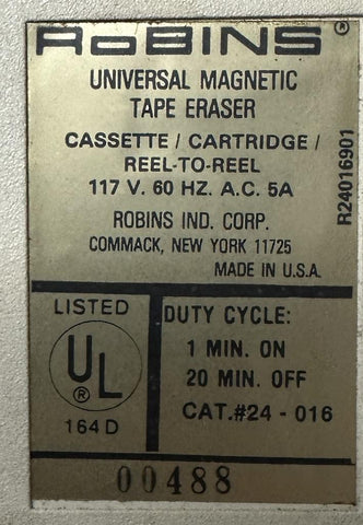 Robins 24-016 Universal Magnetic Tape Eraser 117VAC 60Hz 5A R24016901