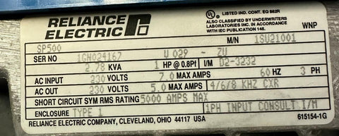 Reliance Electric SP500 1SU21001 AC Drive 1 HP 3-Phase 230 VAC 60 Hz