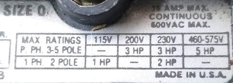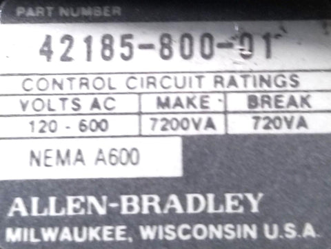 Allen-Bradley 509-A0D Motor Starter 42185-800-01 Ser B Size 0 A600