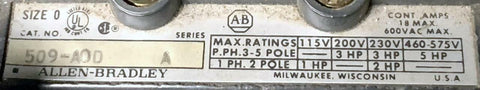 Allen-Bradley 509-AOD Non-Reversing Starter NEMA Size 0 Series A