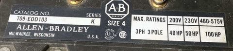 Allen-Bradley 709-E0D103 Motor Starter NEMA Size 4 Series K