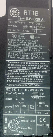 New General Electric RT1B Motor Starter Overload 0.16-0.26 Amp
