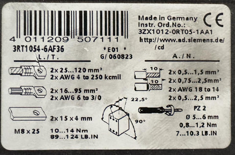 Siemens 3RT1054-6...6 Motor Starter IEC Contactor 3-Phase 1000V