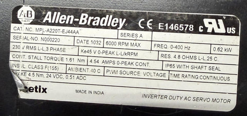 Allen-Bradley MPL-A220T-EJ44AA Kinetix AC Servo Motor Series A 230V 6000 RPM