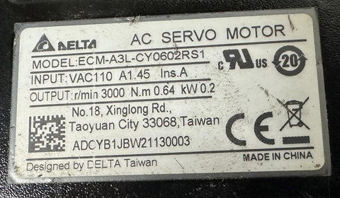 Delta ECM-A3L-CY0602RS1 AC Servo Motor 110 V 1.45 A 3000 RPM 0.64 Nm