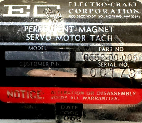 Electro Craft 0652-00-005 Permanent-Magnet Servo Motor Tach