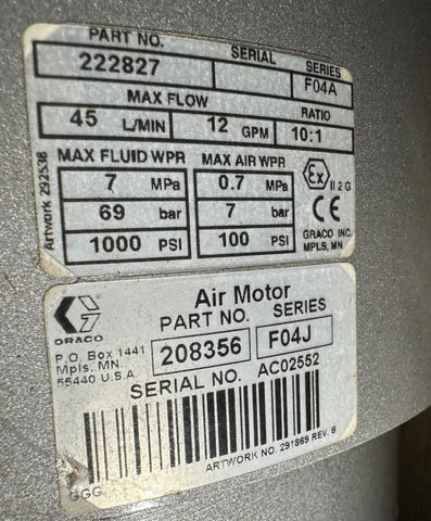 Graco 208-356 Bulldog Air Motor w/ Graco 222827 Pump 12 GPM 10:1 Ratio Dura Flow