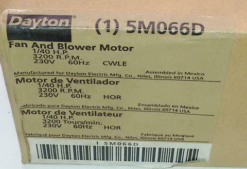 New Dayton 5M066D Shaded Pole Motor 1/40 HP 3200 RPM 230 VAC 60 Hz CWLE