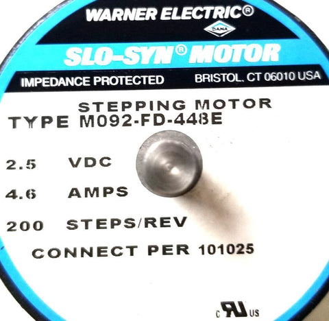 Warner Slo-Syn M092-FD-448E Motor 2.5VDC 4.6A 200 Steps-Rev Connect Per 101025