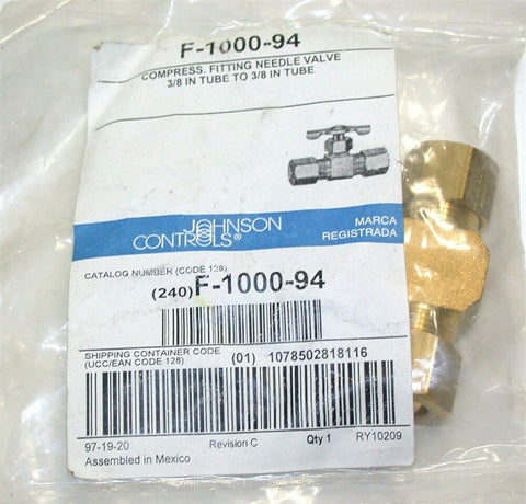 Up To 6 New Johnson Controls Brass 3/8" Needle Valves F-1000-94