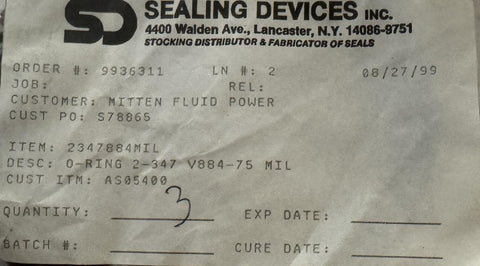 Lot of (4) Sealing Devices 2-347 O-Ring V884-75 MIL