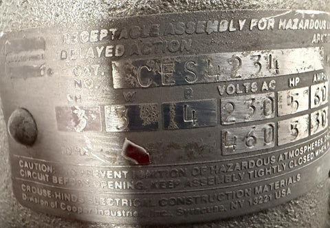 Crouse-Hinds CES4234 Arktite Delayed Action Receptacle 3-Phase 230/460 V 4P 3W