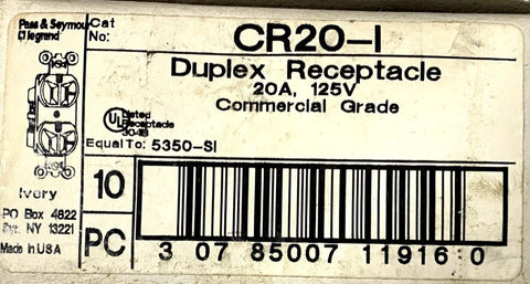 Pass & Seymour CR20-I Duplex Receptacle 2 Pole 3 Wire 20A 125V Ivory (10 Pack)