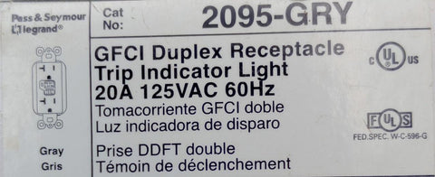 Pass & Seymour Legrand 2095-GRYGFCI Duplex Receptacle W/ Trip Indicator 20A 125V