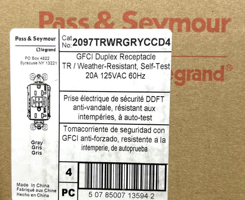 Pass & Seymour Legrand 2097TRWRGRYCCD4 GFCI Duplex Receptacle 20A 125VAC -4 Pack