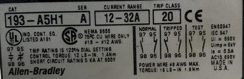 Allen-Bradley 193-A5H1 Overload Relay 12-32 Amps