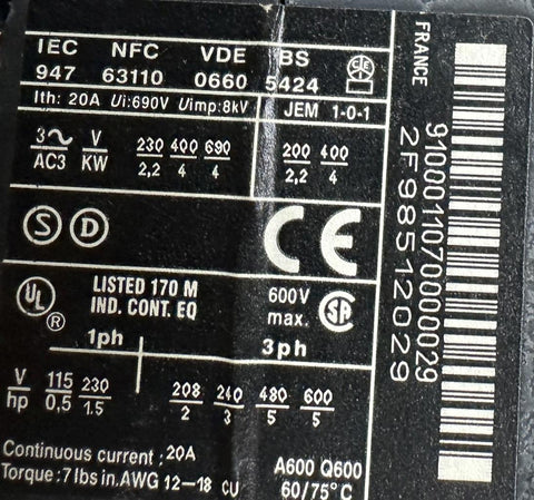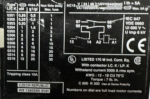 Telemecanique LC1K0910F7 Contactor 110V 50/60 Hz w/ LR2K0308 Overload Relay