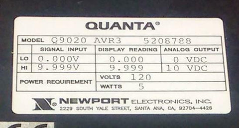 You are Purchasing a Newport Quanta Digital Panel Meter. Model: Q9020 AVR3 This Panel Meter is New in the Original Box and Fully Guaranteed.