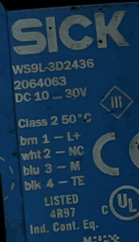 Sick WS9L-3D2436 Photoelectric Sensor 10-30VDC 100mA 0-60m Range 2064063